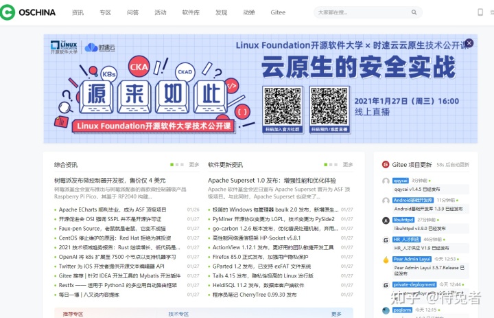 開源中國也是中國唯一一個專業報道開源事件的社區。網站會實時上報開源世界的所有信息,還有中文版:gitee。